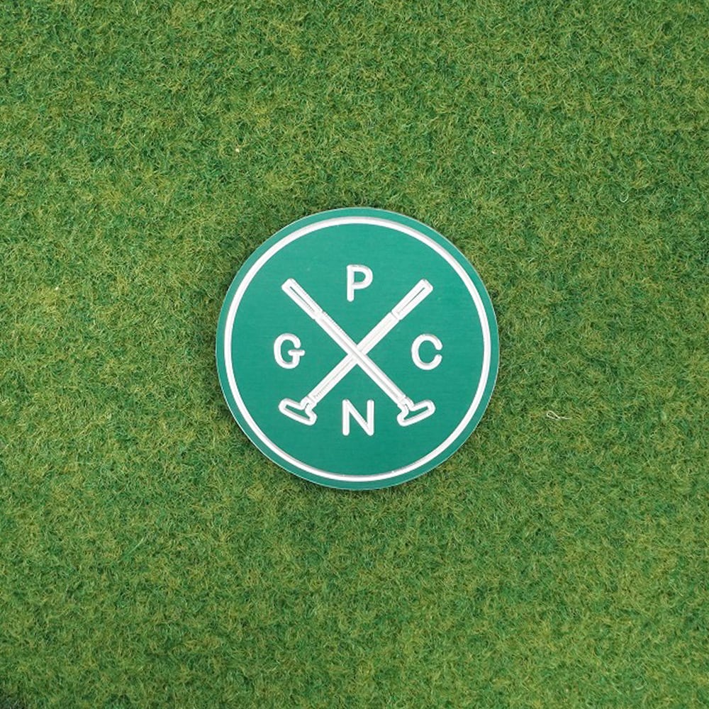 2本のパターを交差させて、その間にPAGANICAの「P」、「G」、「N」、「C」を配置させたデザインとなっております。また、グリーンの芝をイメージさせるために、マーカーの色を緑にしております。