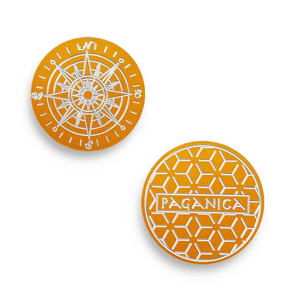 西洋の羅針盤のデザインのマーカー。色はゴールドとなっており、金の高級感ある羅針盤をイメージさせるデザインとなっております。マーカー上には羅針盤の指針、「N」、「W」,「S」,「E」、がデザインされており、グリーン上で目標方向をしっかり定める事ができます。