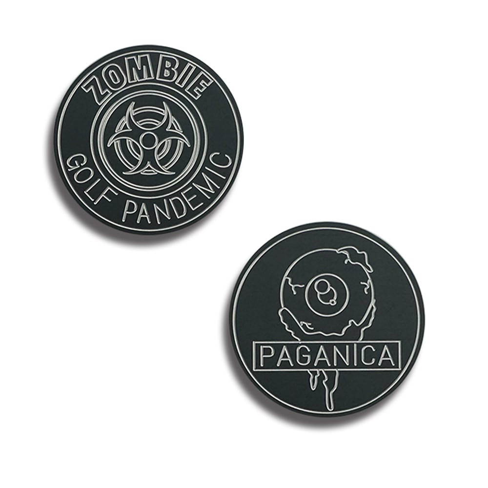 バイオハザード(生物災害)シンボルをデザインしたマーカー。 ゴルフがウイルスのように世界的に流行していることを表現したマーカーです。